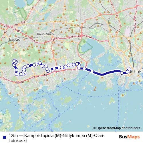 125n Bus - Kamppi-Tapiola (M)-Niittykumpu (M)-Olari- Latokaski