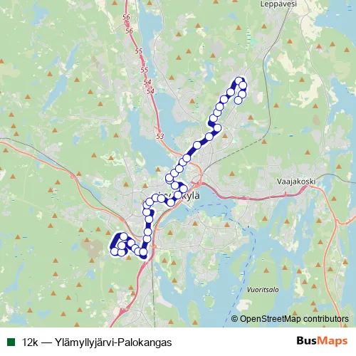 Bus 12k - Ylämyllyjärvi-Palokangas: Full Schedule in Jyvaeskylae