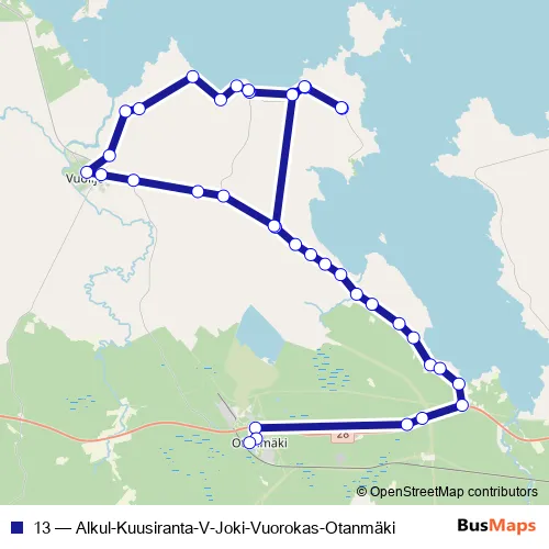 Click here to view the nearest 13 - Alkul-Kuusiranta-V-Joki-Vuorokas-Otanmäki bus stop.