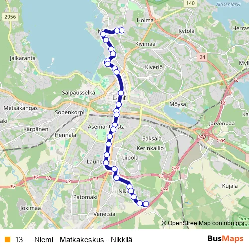 Bus 13 - Niemi - Matkakeskus - Nikkilä Schedule in Lahti