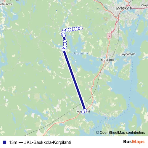 Bus 13m - JKL-Saukkola-Korpilahti: Full Schedule in Jyvaeskylae