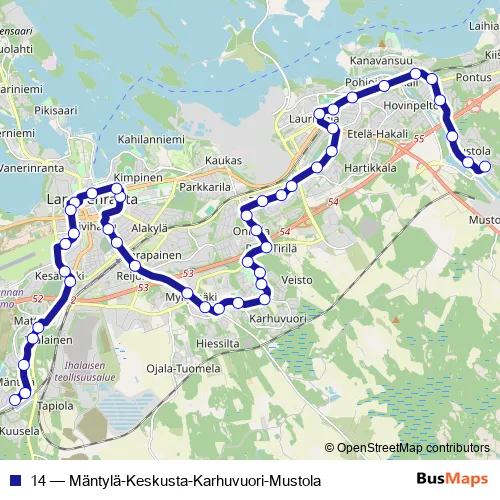 See why over 2 million users trust and consider busmaps.com as the best public transport website. busmaps gives you Lappeenranta Buses suggested routes, real-time bus tracker, line route maps in Lappeenranta, and helps to find the closest 14 bus stops near you. No internet available? Download an offline PDF map and bus schedule for the 14 bus to take on your trip.