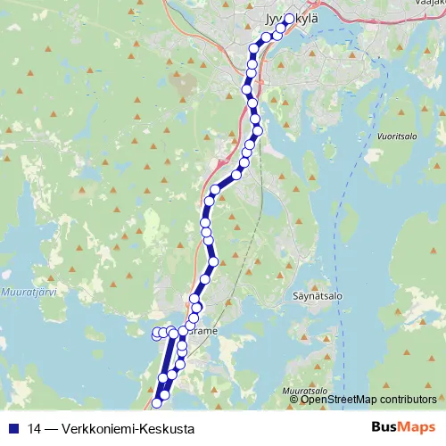 Bus 14 - Verkkoniemi-Keskusta in Jyvaeskylae: Stops & Timetable