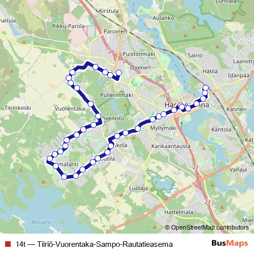 See why over 2 million users trust and consider busmaps.com as the best public transport website. busmaps gives you Haemeenlinna Buses suggested routes, real-time bus tracker, line route maps in Haemeenlinna, and helps to find the closest 14t bus stops near you. No internet available? Download an offline PDF map and bus schedule for the 14t bus to take on your trip.