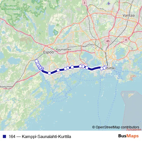 Bus 164 - Kamppi-Saunalahti-Kurttila: Full Schedule in Helsinki