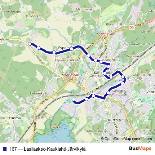 Bus 167 - Lasilaakso-Kauklahti-Järvikylä in Kauklahti: Stops & Timetable