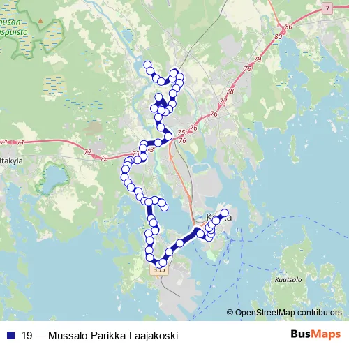 Bus 19 - Mussalo-Parikka-Laajakoski in Kotka: Stops & Timetable