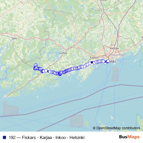 Bus 192 - Fiskars - Karjaa - Inkoo - Helsinki in Inga: Stops & Timetable