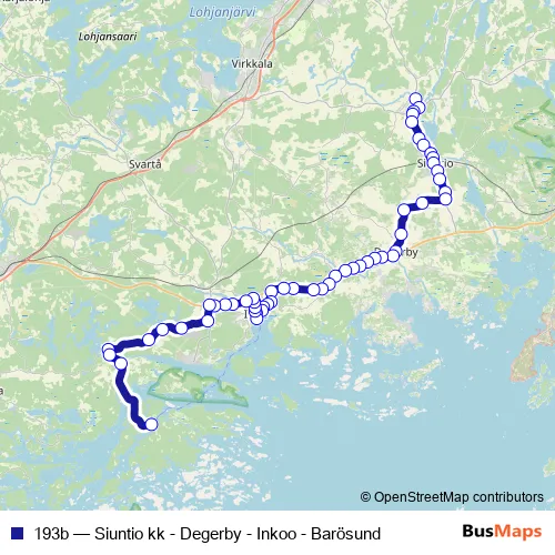 Bus 193b - Siuntio kk - Degerby - Inkoo - Barösund: Full Schedule in Inga