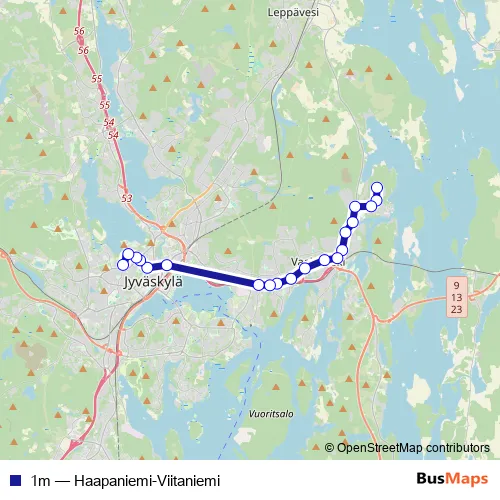 See why over 2 million users trust and consider busmaps.com as the best public transport website. busmaps gives you Jyvaeskylae Buses suggested routes, real-time bus tracker, line route maps in Jyvaeskylae, and helps to find the closest 1m bus stops near you. No internet available? Download an offline PDF map and bus schedule for the 1m bus to take on your trip.