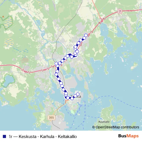 Click here to view the nearest 1r - Keskusta - Karhula - Keltakallio bus stop.