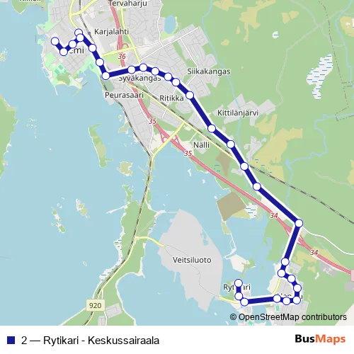 Click here to view the nearest 2 - Rytikari - Keskussairaala bus stop.