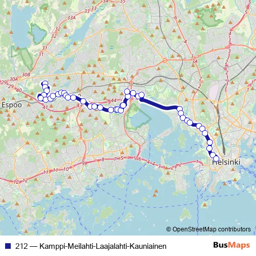 Bus 212 - Kamppi-Meilahti-Laajalahti-Kauniainen Schedule in Helsinki