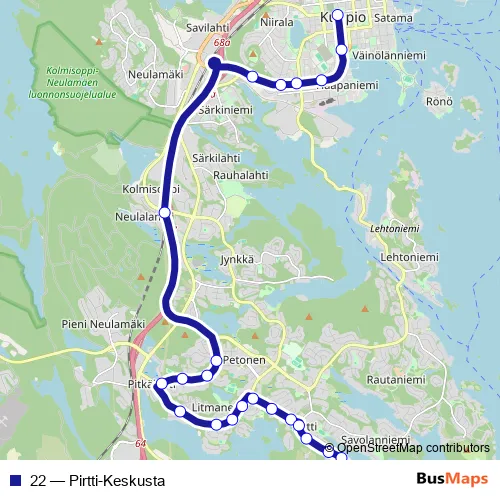 Bus 22 - Pirtti-Keskusta in Kuopio: Stops & Timetable