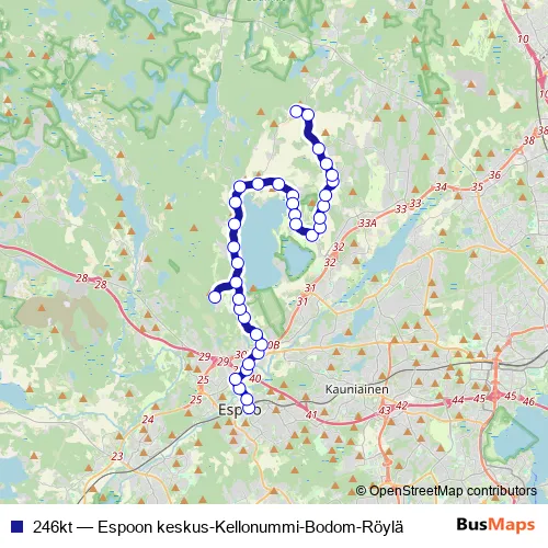 Bus 246kt - Espoon keskus-Kellonummi-Bodom-Röylä in Helsinki: Stops & Timetable