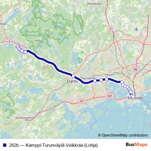 Bus 282b - Kamppi-Turunväylä-Veikkola-(Lohja): Full Schedule in Helsinki