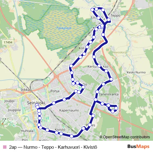 See why over 2 million users trust and consider busmaps.com as the best public transport website. busmaps gives you Seinaejoki Buses suggested routes, real-time bus tracker, line route maps in Seinaejoki, and helps to find the closest 2ap bus stops near you. No internet available? Download an offline PDF map and bus schedule for the 2ap bus to take on your trip.