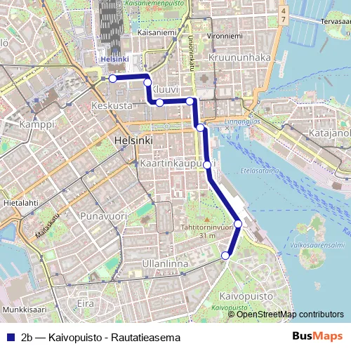 Kaivopuisto. 2b (Kaivopuisto - Rautatieasema) is operational during everyday.