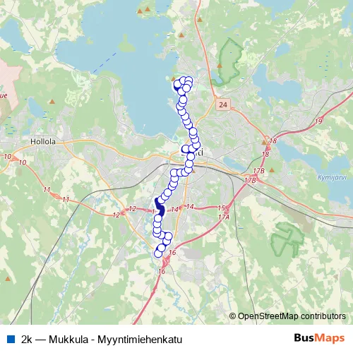 Bus 2k - Mukkula - Myyntimiehenkatu in Lahti: Stops & Timetable