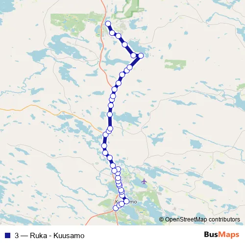The first stop of the 3 bus route is Ouluntaival, Huoparintie and the last stop is Ruka Kumpare. 3 (Ruka - Kuusamo) is operational during everyday.