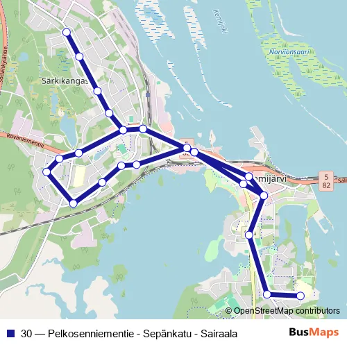 See why over 2 million users trust and consider busmaps.com as the best public transport website. busmaps gives you Kemijaervi Buses suggested routes, real-time bus tracker, line route maps in Kemijaervi, and helps to find the closest 30 bus stops near you. No internet available? Download an offline PDF map and bus schedule for the 30 bus to take on your trip.