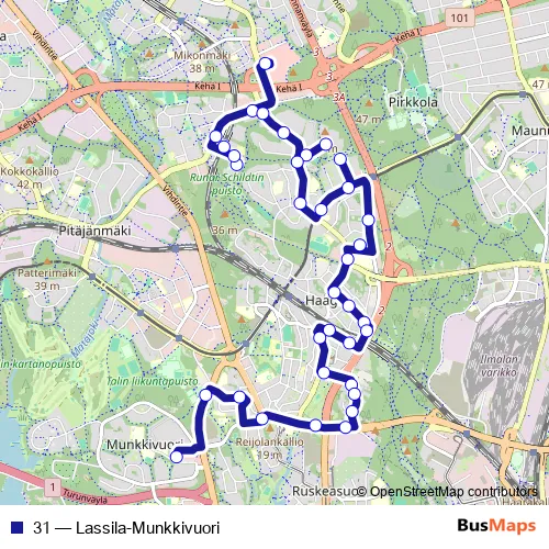 Bus 31 - Lassila-Munkkivuori in Helsinki: Stops & Timetable
