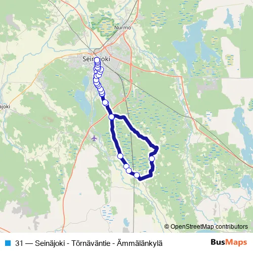 Bus 31 - Seinäjoki - Törnäväntie - Ämmälänkylä: Full Schedule in Seinaejoki