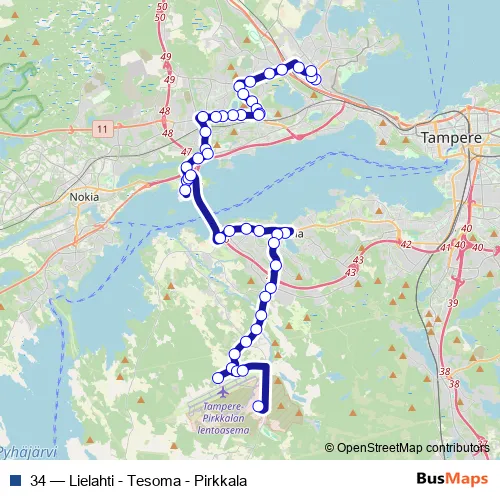 Bus 34 - Lielahti - Tesoma - Pirkkala Schedule in Tampere