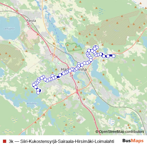 See why over 2 million users trust and consider busmaps.com as the best public transport website. busmaps gives you Haemeenlinna Buses suggested routes, real-time bus tracker, line route maps in Haemeenlinna, and helps to find the closest 3k bus stops near you. No internet available? Download an offline PDF map and bus schedule for the 3k bus to take on your trip.