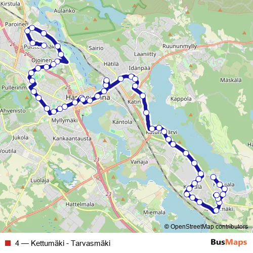 See why over 2 million users trust and consider busmaps.com as the best public transport website. busmaps gives you Haemeenlinna Buses suggested routes, real-time bus tracker, line route maps in Haemeenlinna, and helps to find the closest 4 bus stops near you. No internet available? Download an offline PDF map and bus schedule for the 4 bus to take on your trip.