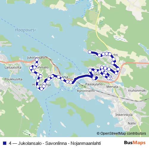 Bus 4 - Jukolansalo - Savonlinna - Nojanmaanlahti in Savonlinna: Stops & Timetable