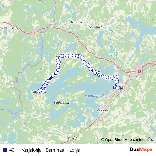 See why over 2 million users trust and consider busmaps.com as the best public transport website. busmaps gives you Lohja Buses suggested routes, real-time bus tracker, line route maps in Lohja, and helps to find the closest 40 bus stops near you. No internet available? Download an offline PDF map and bus schedule for the 40 bus to take on your trip.