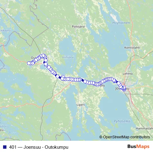 See why over 2 million users trust and consider busmaps.com as the best public transport website. busmaps gives you Joensuu Buses suggested routes, real-time bus tracker, line route maps in Joensuu, and helps to find the closest 401 bus stops near you. No internet available? Download an offline PDF map and bus schedule for the 401 bus to take on your trip.