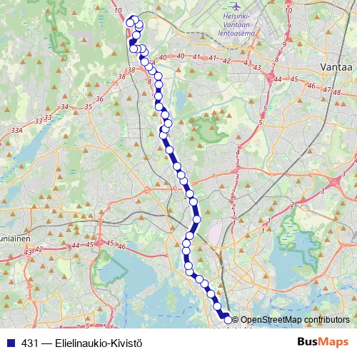 Bus 431 - Elielinaukio-Kivistö Schedule in Helsinki