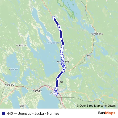 See why over 2 million users trust and consider busmaps.com as the best public transport website. busmaps gives you Kontiolahti Buses suggested routes, real-time bus tracker, line route maps in Kontiolahti, and helps to find the closest 440 bus stops near you. No internet available? Download an offline PDF map and bus schedule for the 440 bus to take on your trip.