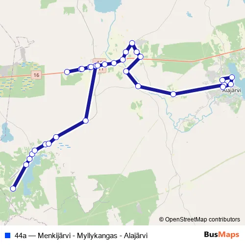 Click here to view the nearest 44a - Menkijärvi - Myllykangas - Alajärvi bus stop.