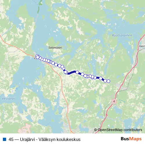 Bus 45 - Urajärvi - Vääksyn koulukeskus in Lahti: Stops & Timetable