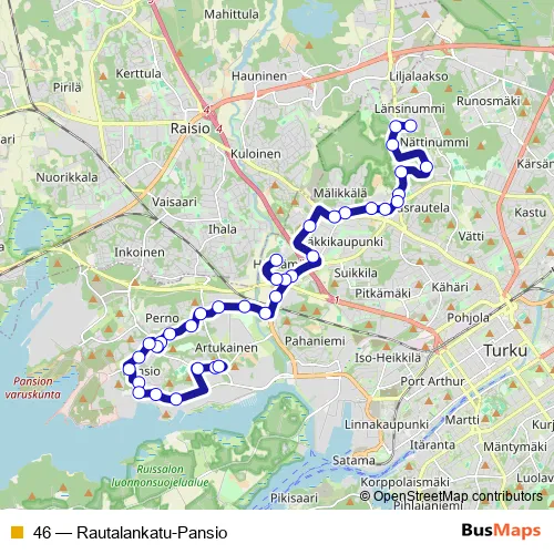 Bus 46 - Rautalankatu-Pansio: Full Schedule in Turku