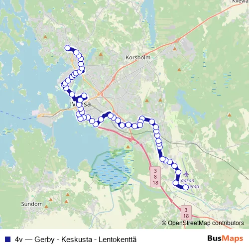 See why over 2 million users trust and consider busmaps.com as the best public transport website. busmaps gives you Vaasa Buses suggested routes, real-time bus tracker, line route maps in Vaasa, and helps to find the closest 4v bus stops near you. No internet available? Download an offline PDF map and bus schedule for the 4v bus to take on your trip.