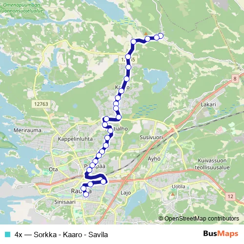 The first stop of the 4x bus route is Sorkka and the last stop is Savila E1. 4x (Sorkka - Kaaro - Savila) is operational during everyday.
