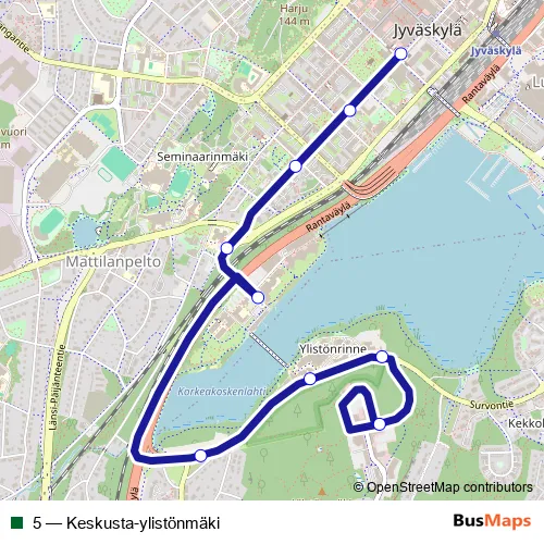 See why over 2 million users trust and consider busmaps.com as the best public transport website. busmaps gives you Jyvaeskylae Buses suggested routes, real-time bus tracker, line route maps in Jyvaeskylae, and helps to find the closest 5 bus stops near you. No internet available? Download an offline PDF map and bus schedule for the 5 bus to take on your trip.