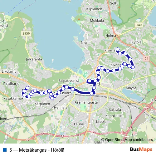 See why over 2 million users trust and consider busmaps.com as the best public transport website. busmaps gives you Lahti Buses suggested routes, real-time bus tracker, line route maps in Lahti, and helps to find the closest 5 bus stops near you. No internet available? Download an offline PDF map and bus schedule for the 5 bus to take on your trip.