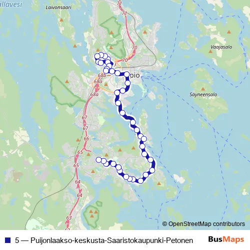 Bus 5 - Puijonlaakso-keskusta-Saaristokaupunki-Petonen: Full Schedule in Kuopio