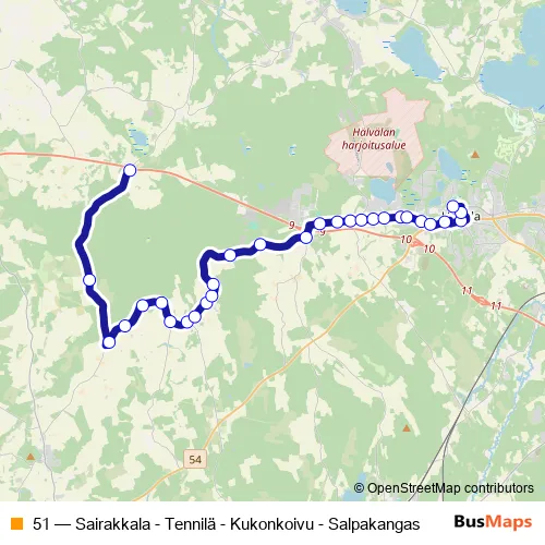 Terveystie. 51 (Sairakkala - Tennilä - Kukonkoivu - Salpakangas) is operational during on weekdays.