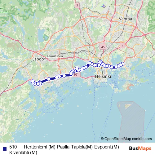 510 (Herttoniemi (M)-Pasila-Tapiola(M)-Espoonl.(M)-Kivenlahti (M)) Bus in Helsinki