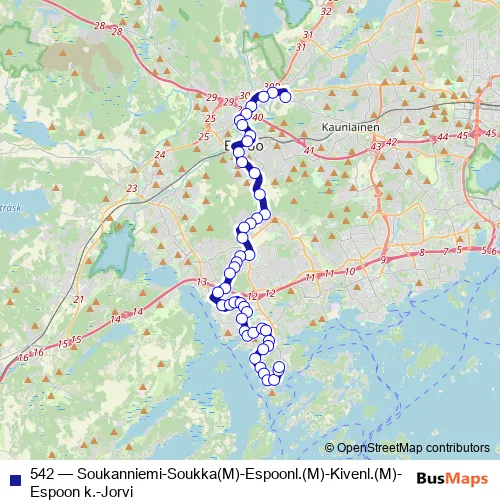 Helsingin seudun liikenne 542 Soukanniemi-Soukka(M)-Espoonl.(M)-Kivenl.(M)-Espoon k.-Jorvi Bus