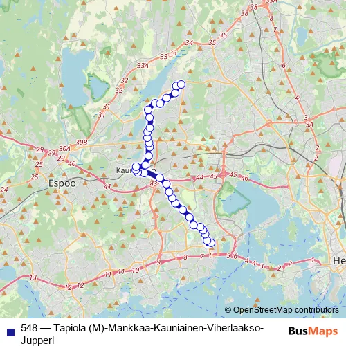 Bus 548 - Tapiola (M)-Mankkaa-Kauniainen-Viherlaakso-Jupperi Schedule in Helsinki