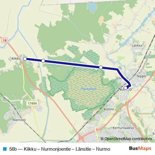 56b Bus - Kiikku – Nurmonjoentie – Länsitie – Nurmo