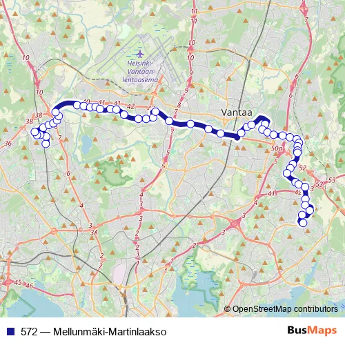 Bus 572 - Mellunmäki-Martinlaakso in Helsinki: Stops & Timetable