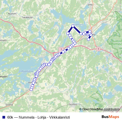Click here to view the nearest 60k - Nummela - Lohja - Virkkalanristi bus stop.